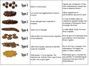 L’université de Bristol aux Royaume Unis a développée une échelle à 7 échelons permettant d’interpréter visuellement ces différentes indications par rapport à la qualité des selles.